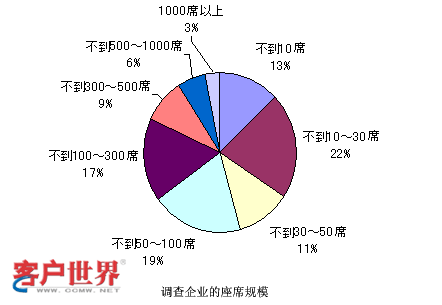 那么和剛才雜志社調(diào)查的結(jié)果是一樣的。這個(gè)數(shù)字又是政府方面調(diào)查的結(jié)果,他們調(diào)查的很細(xì),對(duì)很小規(guī)模的,比如說(shuō)1-4人的呼叫中心都進(jìn)行了調(diào)查,并且看到這種小規(guī)模的呼叫中心還占有很大的比例?梢钥吹,10人以下的呼叫中心可能在這個(gè)結(jié)果里面占了基本上高于50%,所以可能得到一個(gè)結(jié)論,就是在日本小型的呼叫中心非常多。
