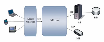 IMS網(wǎng)絡選擇SIP協(xié)議作為呼叫控制協(xié)議,選擇Diameter協(xié)議為運行AAA(認證、授權(quán)、計費)功能的協(xié)議,在網(wǎng)絡安全方面采用IPSec技術(shù)和TLS安全傳送協(xié)議。IMS體系結(jié)構(gòu)包括應用層平面、控制層平面、媒體層平面3個部分。應用層包括了多種類型的應用服務器,這些主持和執(zhí)行服務的SIP實體,可操作在SIP代理模式、SIPUA模式和SIPB2BUA模式下。應用層為用戶提供多媒體業(yè)務,它獨立于網(wǎng)絡的接入層、核心控制層存在,能保證業(yè)務開發(fā)和提供的獨立性?刂茖犹幚頃捫帕,由不同的功能實體來處理信令流,x-CSCF(呼叫會話控制功能)、HSS(歸屬用戶服務器)、MGCF(媒體網(wǎng)關控制功能)、MRFC(媒體資源功能控制器)等實體協(xié)同操作,提供用戶的統(tǒng)一認證、呼叫控制、策略管理、漫游和計費等功能。媒體層作為一個媒體宣告服務器,直接在用戶之間、用戶和IMS媒體功能(如媒體資源控制處理器MRFP)之間傳輸媒體流。