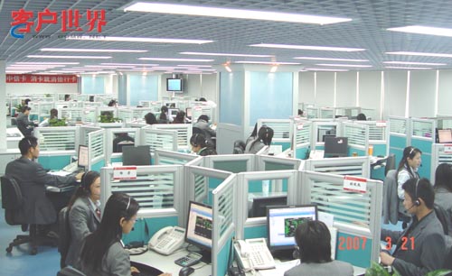 2003年,中信銀行信用卡中心客戶服務(wù)中心在深圳成立,歷時(shí)三年多,客服中心已經(jīng)擁有近300個(gè)座席,具備服務(wù)200多萬客戶和400多個(gè)網(wǎng)點(diǎn)的服務(wù)能力,成為中信銀行的一張人氣名片?头行默F(xiàn)有客服代表200多名,平均年齡不到26歲。中信銀行信用卡中心7*24小時(shí)的普通話、廣東話、英語的咨詢服務(wù)就是由他們提供。