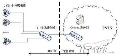 相反,在傳統(tǒng)的PBX或新興的IP-PBX中,這些功能模塊通常配置在用戶側(cè)的網(wǎng)絡(luò)元素上,而且通過一條或多條專用線路T1(傳統(tǒng)PBX)或DSL(新興PBX)連接到中心辦公室,用PSTN的連接。圖1說明了PBX和Centrex服務(wù)的區(qū)別。而且,DSL還能在相同的鏈路支持語(yǔ)音和數(shù)據(jù)的傳輸,而且維護(hù)鏈路的成本也遠(yuǎn)遠(yuǎn)小于維護(hù)T1所需的代價(jià)。另外,由于呼叫控制能夠在本地裝載,而IP-PBX能夠支持Internet連接,因此每23(T1-PRI)或24(T1-CAS)個(gè)電話終端就不再需要一條專用線路T1的支持了。(后續(xù)將進(jìn)一步說明)