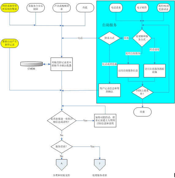 在記錄流程之后,事件將經過分類和初始支持流程,而服務請求則被傳遞到“服務請求處理”流程。