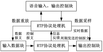 RTP是針對實時多點多媒體會議而設(shè)計的實時傳輸協(xié)議,它提供了端到端的實時媒體(交互式音頻和視頻)傳輸服務(wù)。RTP是運行在UDP上的傳輸層協(xié)議,以便利用UDP的多路復用、檢查和服務(wù)。然而RTP也可以和其他適當?shù)南聦泳W(wǎng)絡(luò)和傳輸層一起使用。RTP本身不能提供任何保證及時提交的機制,也不提供其他服務(wù)質(zhì)量(QoS)的保證,而是依靠下層服務(wù)完成這些任務(wù)。它既不保證提交,也不防止錯序提交,還不假設(shè)下層基礎(chǔ)網(wǎng)絡(luò)可靠而且按序提交分組。RTP當中包含的順序號允許接收方重建發(fā)送方分組序列,但是,在視頻解碼中,順序號也可能用于確定分組的適當位置,從而不必按序解碼分組。RTP的應用框圖如圖6所示。