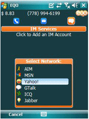 軟件的使用與Talkonaut大同小異,不過EQO更美觀,而且支持QQ和CMWAP。在開始聊天的時候EQO會發(fā)出一條包含其網(wǎng)址的說明消息,有廣告之嫌。由于其主業(yè)是國際電話,所以注冊時網(wǎng)站預(yù)贈你¥15元的話費(fèi)試用長話功能。