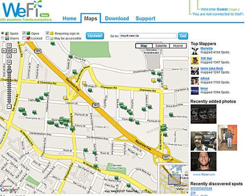 當你需要進行緊急無線接入時,有一種方便、免費能找到附近熱點的辦法。運行這個程序并輸入你所在的位置,這個程序?qū)⒘谐龈浇乃袩狳c。它將幫你搜索到付費的或免費的熱點,并保持程序數(shù)據(jù)庫的頻繁更新。