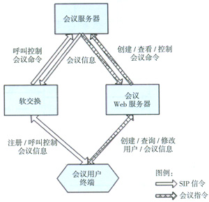 (2)會(huì)議應(yīng)用服務(wù)器:向用戶提供統(tǒng)一的Web會(huì)議界面,使得用戶簡(jiǎn)單快捷的使用會(huì)議業(yè)務(wù);提供用戶的身份認(rèn)證以及相關(guān)信息的管理功能;提供會(huì)議記錄以及詳細(xì)信息的查詢功能;提供輔助的數(shù)據(jù)協(xié)同功能,如文件共享;另外,應(yīng)用服務(wù)器還可以通過(guò)對(duì)標(biāo)準(zhǔn)的接口調(diào)用,豐富業(yè)務(wù)的功能。如NGN的業(yè)務(wù)平臺(tái)如果具有通信簿能力服務(wù)器,會(huì)議服務(wù)器可以通過(guò)標(biāo)準(zhǔn)的接口調(diào)用該能力,那么用戶可以在預(yù)約會(huì)議時(shí)方便的添加與會(huì)者。
