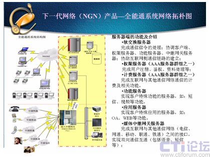 到了2007年下半年,以前勸我的朋友紛紛找我要全能通。而且他們現(xiàn)在還基于這種架構(gòu),進行更深一步的開發(fā)。2008年推出的統(tǒng)一通信,在某些方面還不如全能通。全能通即有目前統(tǒng)一通信的功能,還甚至包括無線的WAP、短信等功能。(詳細的功能與結(jié)構(gòu),請看‘全能通--下一代網(wǎng)絡(luò)(NGN)的應(yīng)用’—是我?guī)秃蛣?chuàng)世紀寫的文章)