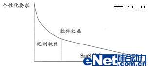 SaaS模式就是不論是什么樣的客戶都向其提供服務(wù),不論服務(wù)的時間長短,不論身處何地。傳統(tǒng)軟件是很難適應(yīng)普通客戶的,普通客戶付不出更多的投資,也不想軟件、硬件、服務(wù)都全面去投資,這樣就只有放棄使用軟件了。自然,軟件市場就少了一大群消費者。而SaaS模式將不細(xì)分客戶類型,讓人人都可使用軟件,讓個個都消費得起軟件?上攵,這是一個怎么龐大的市場。如下圖所示: