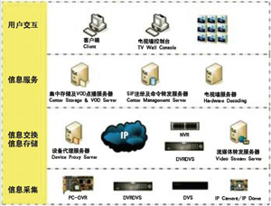 信息交換指將采集到的信息使用標(biāo)準(zhǔn)協(xié)議進(jìn)行封裝,通過(guò)IP網(wǎng)絡(luò)將封裝的信息交換到目標(biāo)主機(jī),目標(biāo)主機(jī)對(duì)信息進(jìn)行處理,以便提供各類(lèi)信息服務(wù)功能,如集中存儲(chǔ)(NVR)、信息檢索、VOD