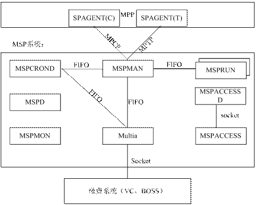 MSP系統內部通過FIFO(First In First Out)消息進行通信,與外部實體通過socket消息進行通信。