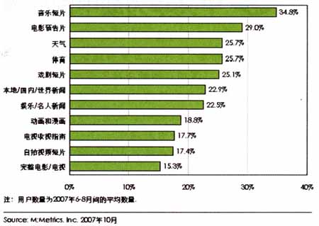 M:Metrics針對(duì)美國手機(jī)用戶的研究數(shù)據(jù)顯示,美國手機(jī)用戶在訂閱手機(jī)電視內(nèi)容時(shí)偏愛娛樂類的內(nèi)容,其中音樂短片、電影預(yù)告片是用戶需求最大的手機(jī)電視內(nèi)容,另外受到歡迎的是與生活相關(guān)的內(nèi)容及新聞內(nèi)容。
