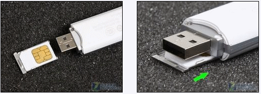 第二個(gè)關(guān)鍵點(diǎn)就是適配器。USB適配器的大小和普通U盤差不多,它要配合USIM卡使用才能提供3G上網(wǎng)功能。在下面的圖片中,您可以看到正確裝入U(xiǎn)SIM卡的方法。另外值得一提的是,考慮到部分用戶的特殊情況,套裝中還附送了一根USB延長線。