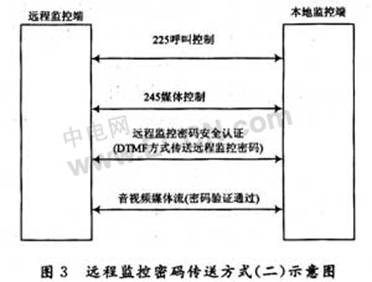 如圖3所示,在呼叫控制和媒體控制過程后傳送和驗(yàn)證遠(yuǎn)程監(jiān)控密碼的方式,具體過程如下: