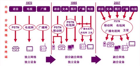 2010年1月13日,國務(wù)院常務(wù)會議決定加快推進電信網(wǎng)、廣播電視網(wǎng)和互聯(lián)網(wǎng)三網(wǎng)融合。5年內(nèi)全面實現(xiàn)電信網(wǎng)、廣播電視網(wǎng)和互聯(lián)網(wǎng)三網(wǎng)融合,并明確提出階段性目標和重點工作。