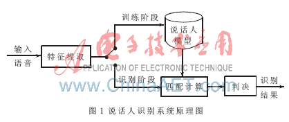 說(shuō)話(huà)人識(shí)別又被稱(chēng)為話(huà)者識(shí)別,是指通過(guò)對(duì)說(shuō)話(huà)人語(yǔ)音信號(hào)的分析處理,自動(dòng)確認(rèn)說(shuō)話(huà)人是否在所記錄的話(huà)者集合中,以及進(jìn)一步確認(rèn)說(shuō)話(huà)人的身份。說(shuō)話(huà)人識(shí)別的基本原理如圖1所示。