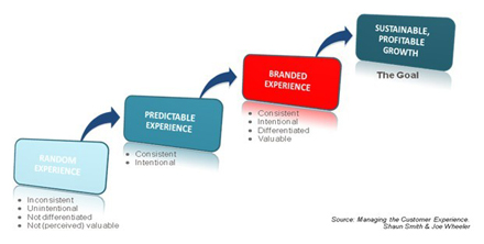目前多數(shù)電信企業(yè)提供的都是‘隨機(jī)’體驗(yàn)。隨機(jī)體驗(yàn)是各種不連續(xù)端到端體驗(yàn)的集合體。它發(fā)生在整體客戶體驗(yàn)未得到恰當(dāng)管理或企業(yè)漠視客戶與員工的情況下。最終這將導(dǎo)致品牌走向墮落以及丟失有價(jià)值的客戶、利潤和企業(yè)價(jià)值。如果企業(yè)不想如上所述這樣慘淡收?qǐng),那么他們至少要做到?chuàng)造和交付一種可預(yù)測(cè)的體驗(yàn)——連續(xù)且有意向的(見圖1)。