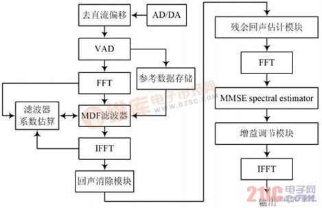 摘 要:聲學(xué)回聲消除器一直是視頻會議系統(tǒng)不可缺少的組件。將回聲消除算法結(jié)合噪音消除和靜音檢測算法等,提出一種改進的實時音頻處理系統(tǒng)方法,并在TMS320C6713B 上實現(xiàn),能夠有效改善噪音、雙工檢測、非線性回聲等導(dǎo)致自適應(yīng)濾波器發(fā)散的問題。該系統(tǒng)在保證正常雙工通話的同時,對非線性回聲的抑制有著明顯的改善效果。