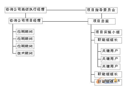 整個組織結構分三層,咨詢公司可以在每一層都安排相應人員予以支持。最高層為項目指導委員會,具有高度決策權。一般由總經理主持,企業(yè)有關高層經理和項目總監(jiān)作為成員。