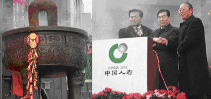 1月8日上午10:30,中國人壽大廈樓前披紅掛彩、獅舞龍騰,中國人壽保險股份有限公司接受中國人保、中國再保、中國信保禮品饋贈儀式在熱烈而隆重的氣氛中順利舉行。三家公司向我公司饋贈了包括兩只寶鼎和三只水晶花瓶在內(nèi)的珍貴禮品,中國人保的唐運(yùn)祥總經(jīng)理、中國再保的戴鳳舉總經(jīng)理、中國信保的唐若昕總經(jīng)理先后發(fā)表了熱情洋溢的講話,祝賀我公司雙喜臨門:紐約、香港成功上市和喬遷新大樓,我公司總經(jīng)理王憲章代表公司接收了三家兄弟公司饋贈的珍貴禮品并致感謝辭,他祝愿四家公司將中國民族保險業(yè)更加發(fā)揚(yáng)光大。公司副總經(jīng)理苗復(fù)春主持了此次捐贈儀式,出席此次饋贈儀式的還有集團(tuán)公司和股份公司總經(jīng)理室的各位領(lǐng)導(dǎo)、各部門總經(jīng)理和員工。