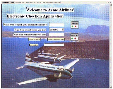 .NET Speech SDK是使用融語(yǔ)音及圖像等為一體的界面來構(gòu)筑Web應(yīng)用的開發(fā)環(huán)境。與該公司的開發(fā)工具--“Visual Studio .NET”配合使用。據(jù)微軟稱,其特點(diǎn)是即使開發(fā)人員不具備語(yǔ)音界面方面的特殊知識(shí)也能使用。比如,上圖就是正在使用.NET Speech SDK開發(fā)的可進(jìn)行語(yǔ)音及鍵盤輸入的窗口。文字輸入框右邊的小框是使用SALT(語(yǔ)音應(yīng)用語(yǔ)言標(biāo)簽)語(yǔ)音相關(guān)命令的標(biāo)記。目前,在支持語(yǔ)音功能的Web應(yīng)用的開發(fā)中,必須使用面向圖形和面向語(yǔ)音的兩種開發(fā)工具!拔覀兊哪康氖翘峁┮粋(gè)使用一種工具就能開發(fā)包括圖形和語(yǔ)音的多種界面的環(huán)境”(該公司負(fù)責(zé).NET Speech技術(shù)的市場(chǎng)營(yíng)銷經(jīng)理James Mastan)。