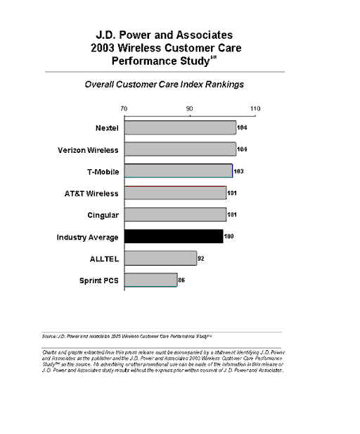 美國市場信息服務公司J.D. Power and Associates于8月28日發(fā)布了2003年移動客戶服務表現(xiàn)評估報告。這份報告提供了根據(jù)客戶與客服代表以及自動應答系統(tǒng)的經(jīng)驗所給出的詳細移動客戶服務表現(xiàn)評分。