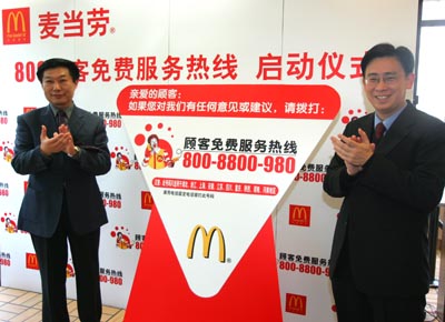 麥當(dāng)勞開通長三角800顧客免費服務(wù)熱線