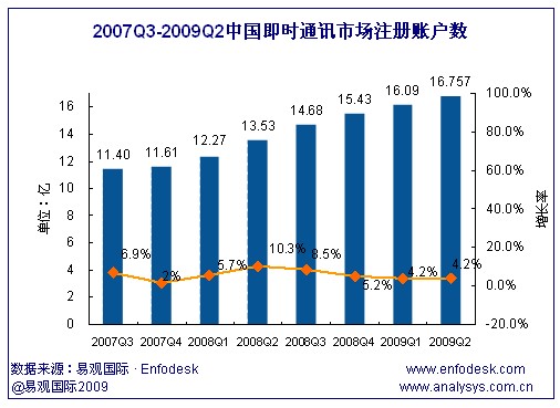 09年2季度中國即時通訊累計注冊賬戶數(shù)達(dá)16.76億