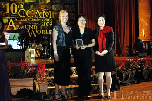 會(huì)議期間,中信銀行信用卡中心副總經(jīng)理金小云代表中國(guó)從亞太客服與呼叫中心聯(lián)盟(APCCAL)高級(jí)官員的手中接過了象征著2009亞太呼叫中心行業(yè)最高榮譽(yù)的2009亞太最佳呼叫中心的獎(jiǎng)牌。