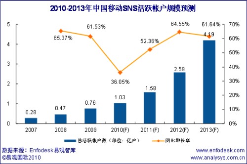 中國(guó)移動(dòng)SNS活躍帳戶(hù)2013年將達(dá)4.19億