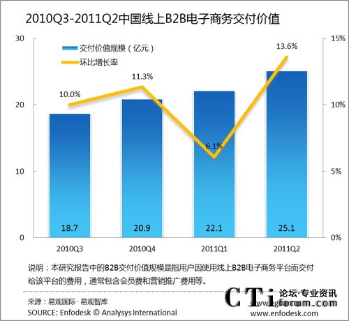 2011年第2季度線上B2B市場交付價(jià)值達(dá)25.1億元