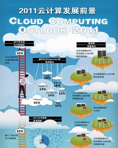 《2011云計算發(fā)展前景調(diào)查報告》的目標(biāo)在于收集企業(yè)用戶中使用虛擬化和云計算技術(shù)的信息,有助于公眾了解云計算技術(shù)及其服務(wù)的演進。這份調(diào)查報告的結(jié)果來自2011年第二季度對BitNami、Cloud.com和Zenoss開源與系統(tǒng)管理社區(qū)中500多位用戶的調(diào)查。其目的是想看清楚云計算技術(shù)的使用趨勢,并對部署虛擬基礎(chǔ)設(shè)施提供參考。