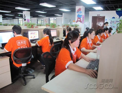 速途網(wǎng)在窩窩團(tuán)位于北美國(guó)際商務(wù)中心的呼叫中心看到,窩窩團(tuán)在線客服和call center以及論壇維護(hù)等部門在一層,而二層是劃分成商超、票務(wù)、親子麗人、中餐、旅游、甜品、生活?yuàn)蕵?lè)等部門的部分銷售團(tuán)隊(duì)。
