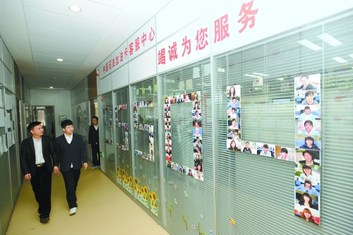 推開(kāi)中國(guó)石油加油卡客服中心的大門,50個(gè)接聽(tīng)坐席進(jìn)入眼簾。身著白色上衣、藍(lán)色馬甲的客服人員忙碌地接聽(tīng)著各地客戶打來(lái)的電話。在這個(gè)中心的西墻上“一卡在手,全國(guó)加油”八個(gè)大字非常醒目。