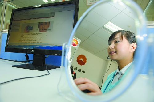 圖:客服人員通過(guò)桌上的小鏡子,可隨時(shí)觀察接聽(tīng)時(shí)的表情,保持微笑