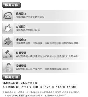 為及時(shí)響應(yīng)納稅人的要求維護(hù)納稅人的權(quán)益,海南省國(guó)家稅務(wù)局于2003年開(kāi)通12366納稅服務(wù)熱線,2008年5月12日正式成立12366納稅服務(wù)呼叫中心,在省國(guó)稅局設(shè)立熱線坐席,專門(mén)為納稅人解答涉稅難題。