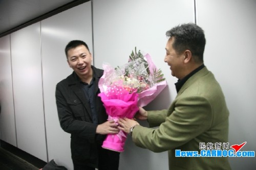 圖1:南航新疆分公司市場銷售部領(lǐng)導迎接“南航優(yōu)秀青年勞務(wù)工”李江濤載譽歸來