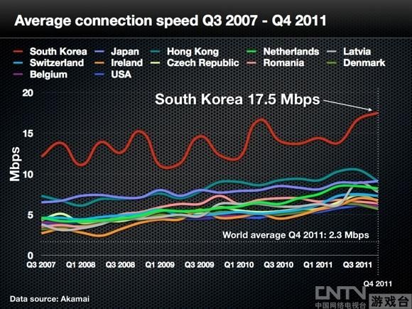 韓國蟬聯(lián)全球網(wǎng)速之首:峰值速度達48Mbps