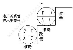 容,而PDCA環(huán)在客戶關系管理中不斷循環(huán)的結果就是企業(yè)客戶關系管理水平的不斷推進,這個過程可以用上圖表示。 |