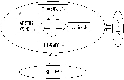 CRM項(xiàng)目小組由公司內(nèi)部各部門(mén)及外部人員共同組成。一般來(lái)講,項(xiàng)目小組應(yīng)該包括高層領(lǐng)導(dǎo)(一般為副總)、銷售和營(yíng)銷部門(mén)的人員、IT部門(mén)的人員、財(cái)務(wù)人員,還要包括所有最終用戶的代言人。他們作為CRM系統(tǒng)實(shí)施的輸入部分。