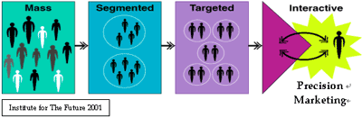 首先,互聯(lián)網(wǎng)的出現(xiàn)改變了營銷的概念,為大規(guī)模定制創(chuàng)造了空前的機(jī)遇。隨著富裕而又有辨別能力的中產(chǎn)階級(jí)的逐漸壯大,預(yù)先營銷的期望以及針對個(gè)人的解決方案日益成為一種標(biāo)準(zhǔn)。從記住他們的行為&偏好并為他們發(fā)送相關(guān)產(chǎn)品信息 (例如Amazon.com) …到幫助他們得到自己理想中的產(chǎn)品 (例如Dell.com,) ,CRM觀念的關(guān)鍵之處就在于為客戶提供符合他們需求的產(chǎn)品/服務(wù)而不是向他們推銷你的東西;ヂ(lián)網(wǎng)使你能夠與客戶建立學(xué)習(xí)關(guān)系,從銷售轉(zhuǎn)移到解決問題;ヂ(lián)網(wǎng)上的CRM已經(jīng)上升到了另一個(gè)高度。