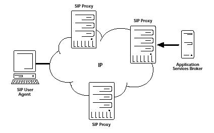 用戶終端程序往往需要包括用戶代理客戶機和用戶代理服務器。代理服務器、重定向服務器 和注冊服務器可以看作是公眾性的網(wǎng)絡服務器。在SIP中還經(jīng)常提到"定位服務器"的概念,但是定位服務器不屬于SIP服務器。SIP服務器請求定位服務的方式也不在SIP的討論范圍之內。其在IP網(wǎng)絡中的實現(xiàn)如下所示。