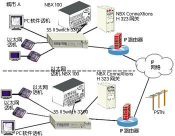 NBX商用話機(jī)是基于 SIP的以太網(wǎng)話機(jī),它內(nèi)含兩個(gè)標(biāo)準(zhǔn)以太網(wǎng)接口,可與局域網(wǎng)交換機(jī)直接連接,同時(shí)拖帶一臺(tái) PC上網(wǎng)。由于話機(jī)本身就支持
