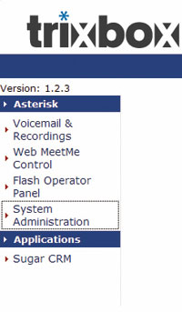 完成這些工作之后,用戶即可進(jìn)入Web界面進(jìn)行后期配置。使用Web瀏覽器訪問(wèn)Trixbox系統(tǒng),首頁(yè)是幾個(gè)主要組件管理界面的入口,如圖3所示,其中“System
