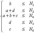 1, 2, …, 6) 表示第i個網(wǎng)關(guān)可以支持的最大呼叫數(shù)量,記通過鏈路A-C的最大呼叫數(shù)量為m, 則a, b, c, d和m滿足以下關(guān)系: