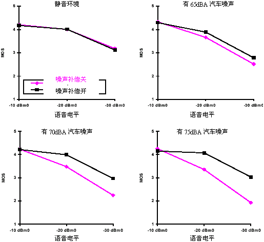 圖3 在噪聲補(bǔ)償功能上的MOS測(cè)試顯示出用戶感覺(jué)到話音質(zhì)量變化的明顯增加;