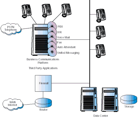 的電話板卡,為中繼線、局站進行配置,以及多媒體的處理,開發(fā)商可以為企業(yè)用戶建立起高效率的新型融合系統。在商務通信平臺上開發(fā)的應用可以傳輸PBX或KTS的核心交換功能,同時,該平臺上駐留的一系列增強的通信應用通常通過附屬的媒體服務器上傳輸。 在基于標準的計算平臺上有效傳輸的核心的和增強的通信應用,對于大型分布式企業(yè)中和縱向市場份額來說是一個凝聚的因素。一個通信系統,其仿照IT(信息技術,Information