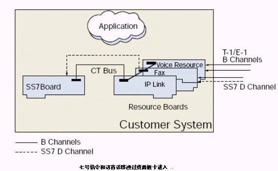 - B 通道直接通過CTbus通過七號信令板卡路由到語音資源板卡