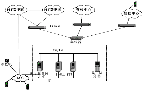 。。如圖所示,Miscall平臺主要包括三個(gè)部分:信令網(wǎng)關(guān)服務(wù)器、IVR工作站及應(yīng)用服務(wù)器。