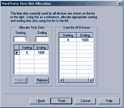 在一個應(yīng)用中可以使用NCM API動態(tài)分配時隙,本文檔規(guī)定鍵入0為最小值,鍵入1000為最大值。然后點擊保留,時隙范圍便顯示在清單中了。