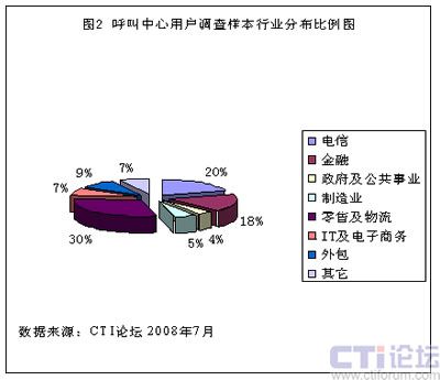 圖2 呼叫中心用戶調(diào)查樣本行業(yè)分布比例圖
