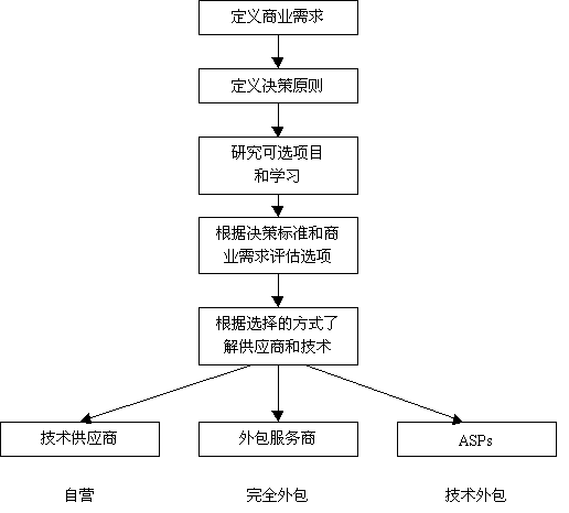 在確定規(guī)模和電子商務(wù)的影響之前,應(yīng)該先花費(fèi)些時(shí)間分析一下環(huán)境條件。圖2提供了一個(gè)框架結(jié)構(gòu),可用于確定實(shí)現(xiàn)電子商務(wù)支持最好的方式。記住,這只是確定你希望采取的步驟的第一步,下一步將選擇一個(gè)銷(xiāo)售商或供應(yīng)商。